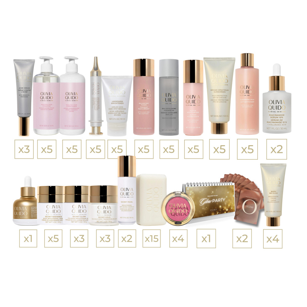 This is the ultimate collection for achieving Miss O's signature glow! Use your Daily Essentials to cleanse, tone, and moisturize, keeping skin clear and balanced with a healthy moisture barrier. Use your Secret Regimen to achieve Olivia's youthful, spot-free, radiance at home.
